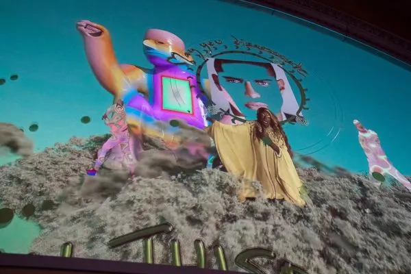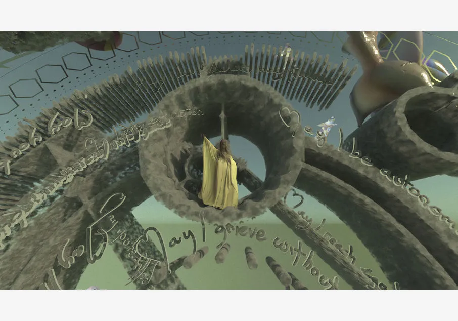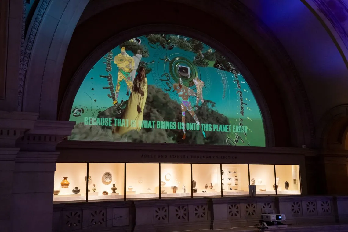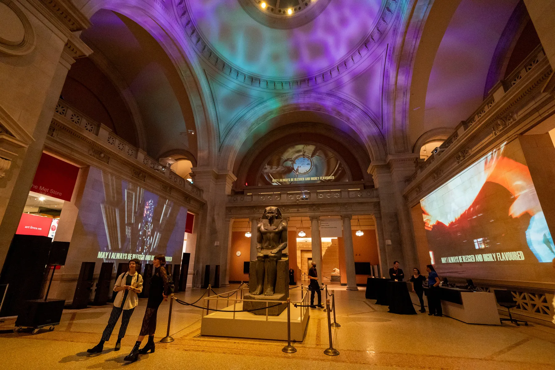 A Metta Prayer brought Jacolby Satterwhite’s dense, layered digital worlds into physical space at The Met. The work fuses motion-captured performance, 3D animation, and video collage into an immersive environment that interrogates the boundaries between the virtual and the embodied.